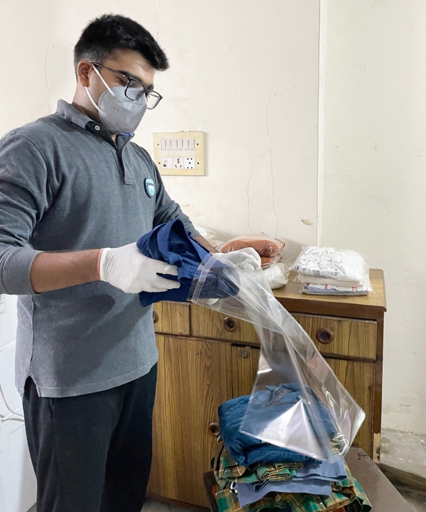 Step 3: We pack the clothes in plastic bags to avoid any further exposure
